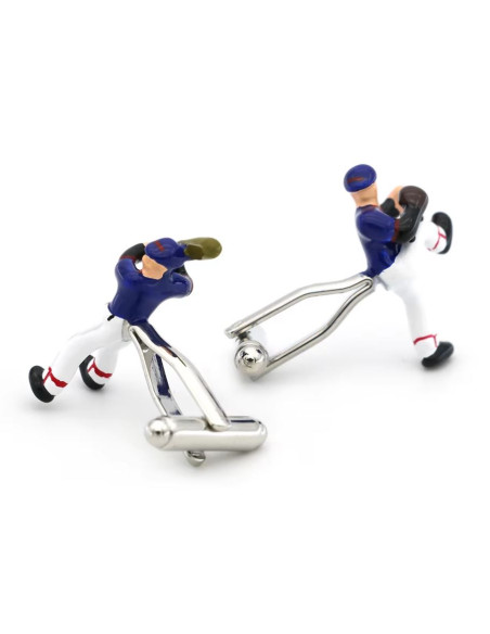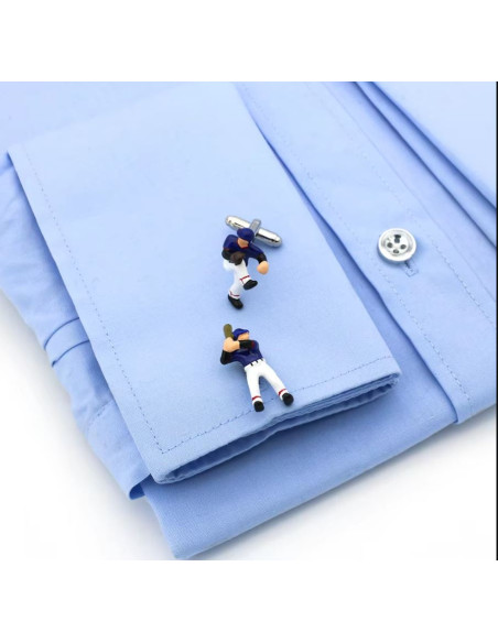 These never-before-seen baseball cufflinks feature dynamic pairs of players: a bat-wielding player on one side and a substitute pitcher on the other. Carefully crafted, the cufflinks combine elegance with elements of sports obsession. The colorful pairs of players in blue shirts and white pants add a touch of mischief, a touch of fun to formal attire. A good choice for anyone who wants to express their interest in baseball while maintaining a serious attitude.